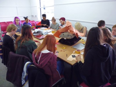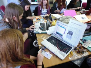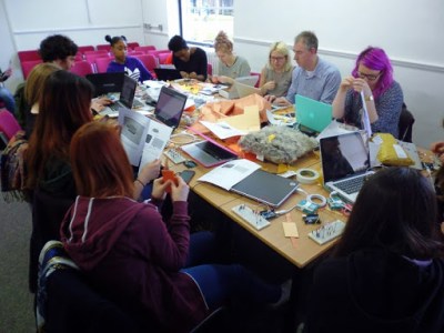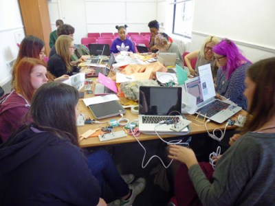 This week we introduced the group to Arduino micro controllers and programmed it to work using a switch that they made using copper taffeta and resistive plastic by 3M.