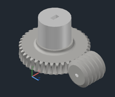 I made three of these boards and Tim used them in his project. We also had to fabricate 4 new adapters for the blinds. One of the blinds was quite big, and even though Tim used a higher torque motor, the weight of the canvas on the blind pulled the blind down against the force of the motor. This was a bit of a problem, and the solution seemed to be in gearing the motor in some way to increase the torque. After a little thought, I came up with this: