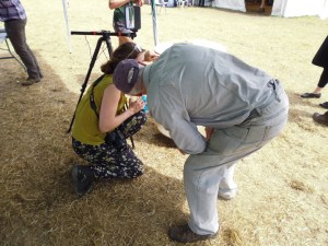 Wendy showing 3D scanner on tripod and rotating scanning table