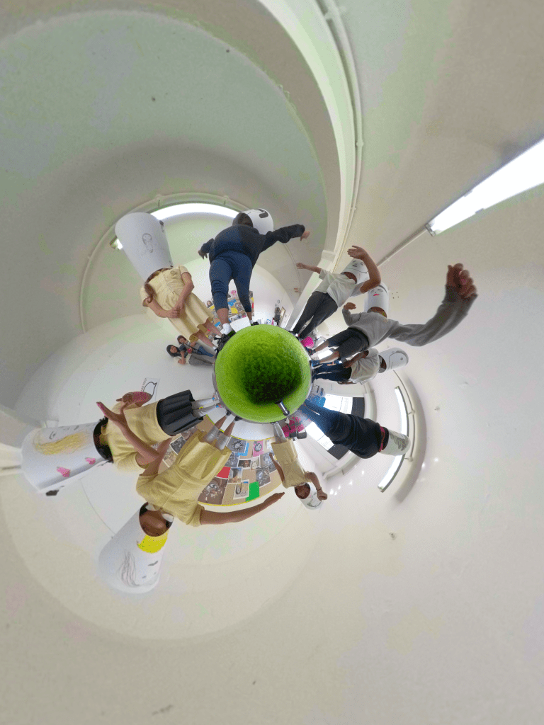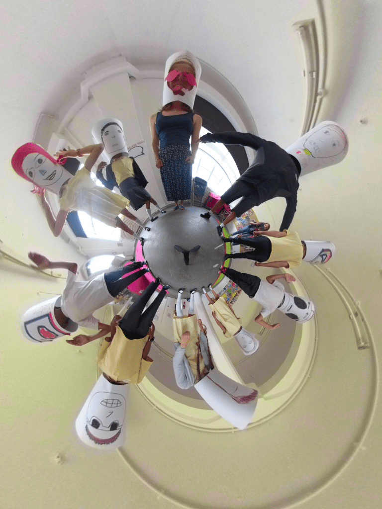 Our final activity was the Selfie Sphere – creating self-portraits and taking 360 degree photos. I found there was some frustration to drawing the self portraits, but everyone seemed to enjoy taking 360 degree photos. There was a lot of cooperation between students as the camera requires multiple people to work effectively. We did have a number of creative self portraits as well – I found it helpful to tell the group that they could be as creative as possible. A big challenge with this project has been combating the preconceptions that school and home has put on what art can be or do. Hopefully after engaging with this, the students can consider new and exciting ways to do art in their own lives.