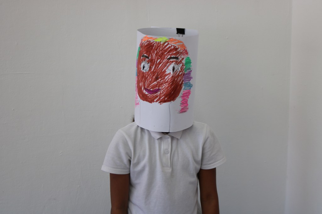 Finally, we went to the “Selfie Sphere” room – creating self-portraits and taking 360 degree photos. The group was pretty low energy after lunch, but they made some very lovely masks and expressed great creativity. I found telling them they can take as much creative liberty as they want definitely helped.