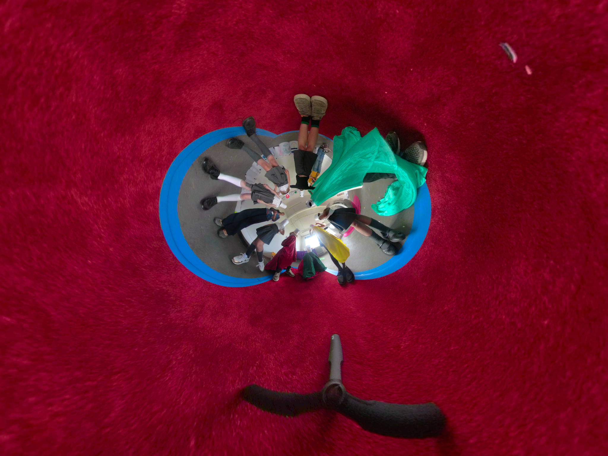 I worked with the ‘Red’ group and we began the day with the ‘Selfie Sphere’, in which the group make their own masks to wear while they take photos using 360 technology. The group made some creative and imaginative masks including square faces, faces with multi-coloured hair and even a green insect cartoon! The group then enjoyed experimenting with taking and curating images on the 360 GoPro cameras.