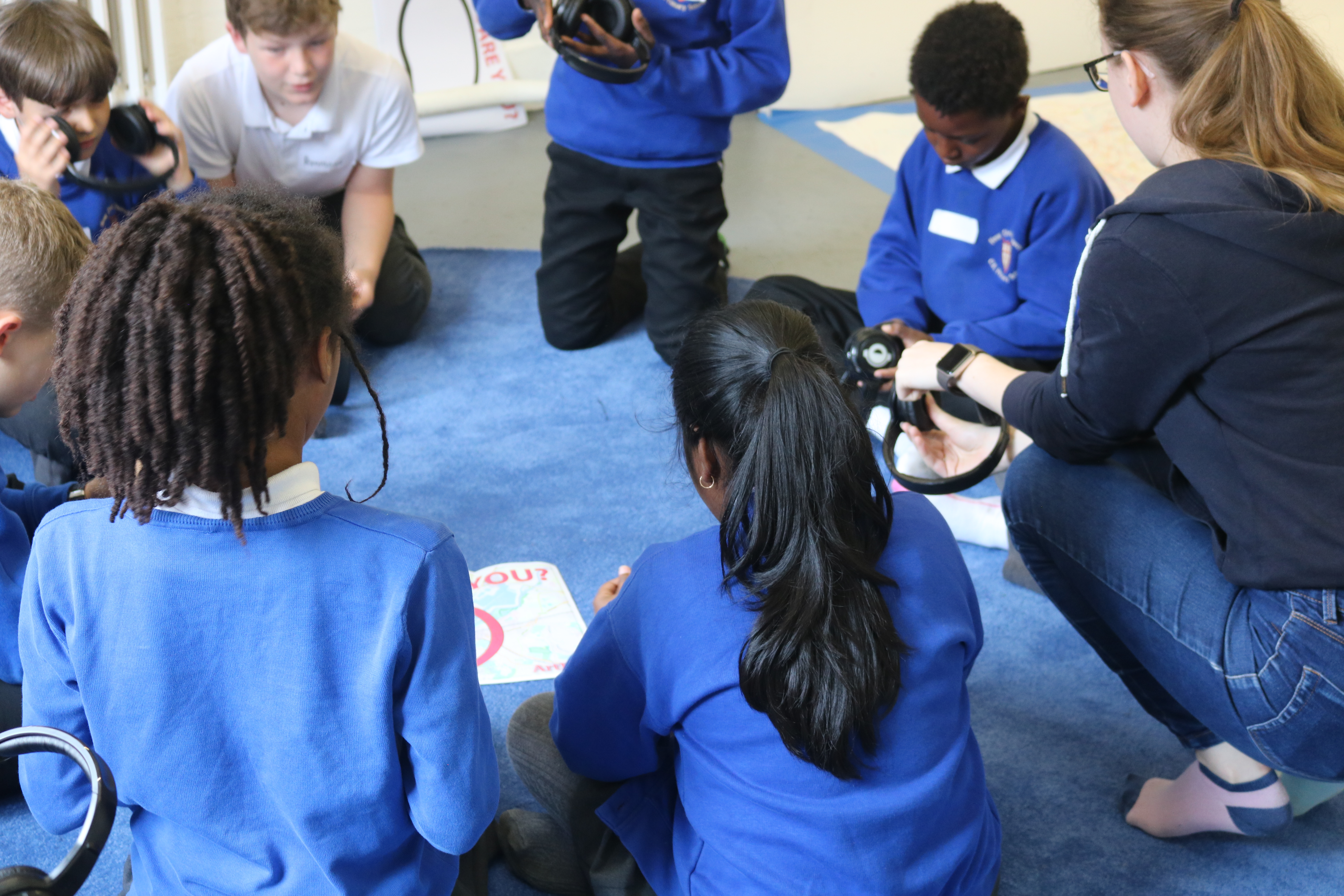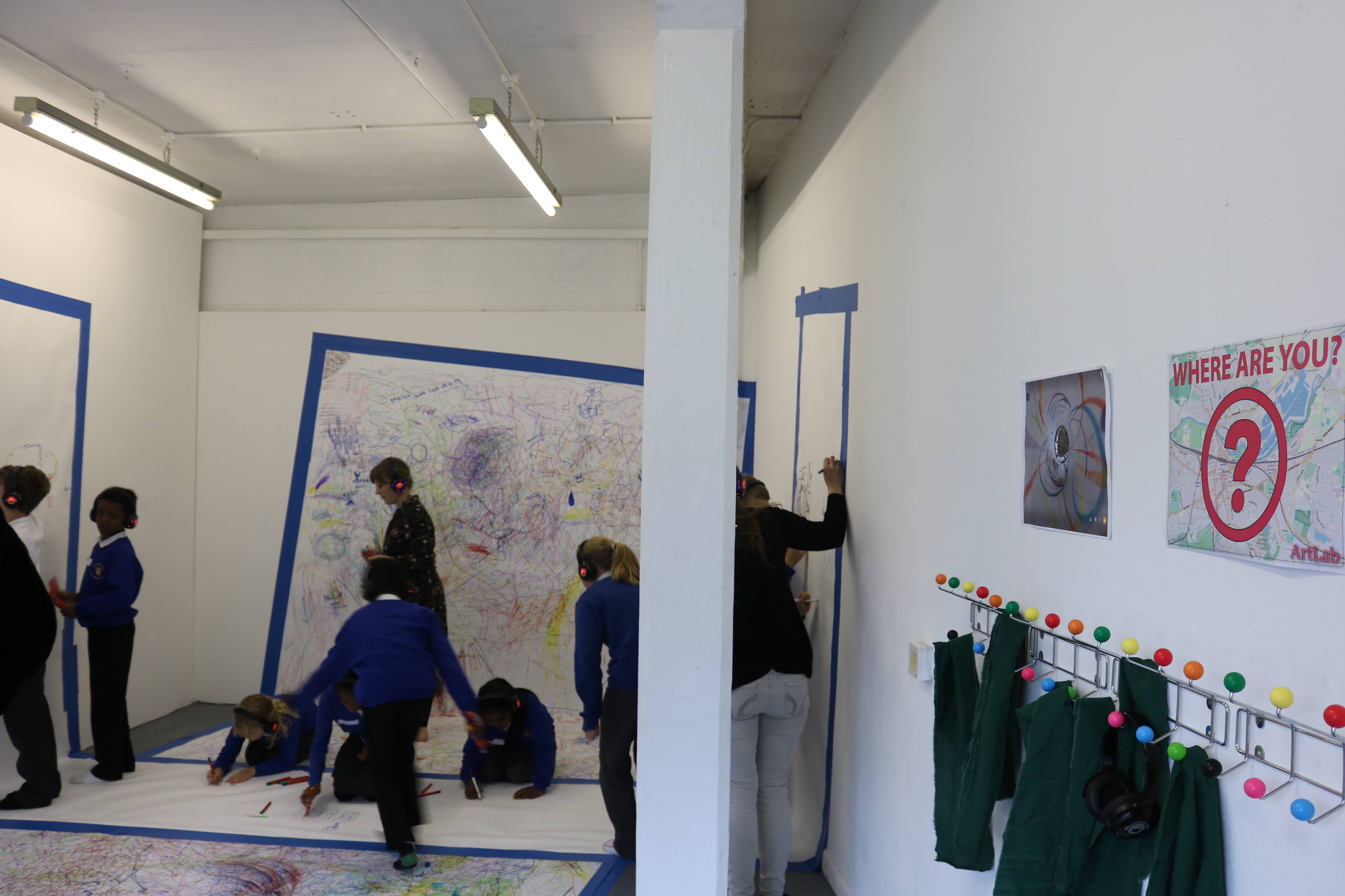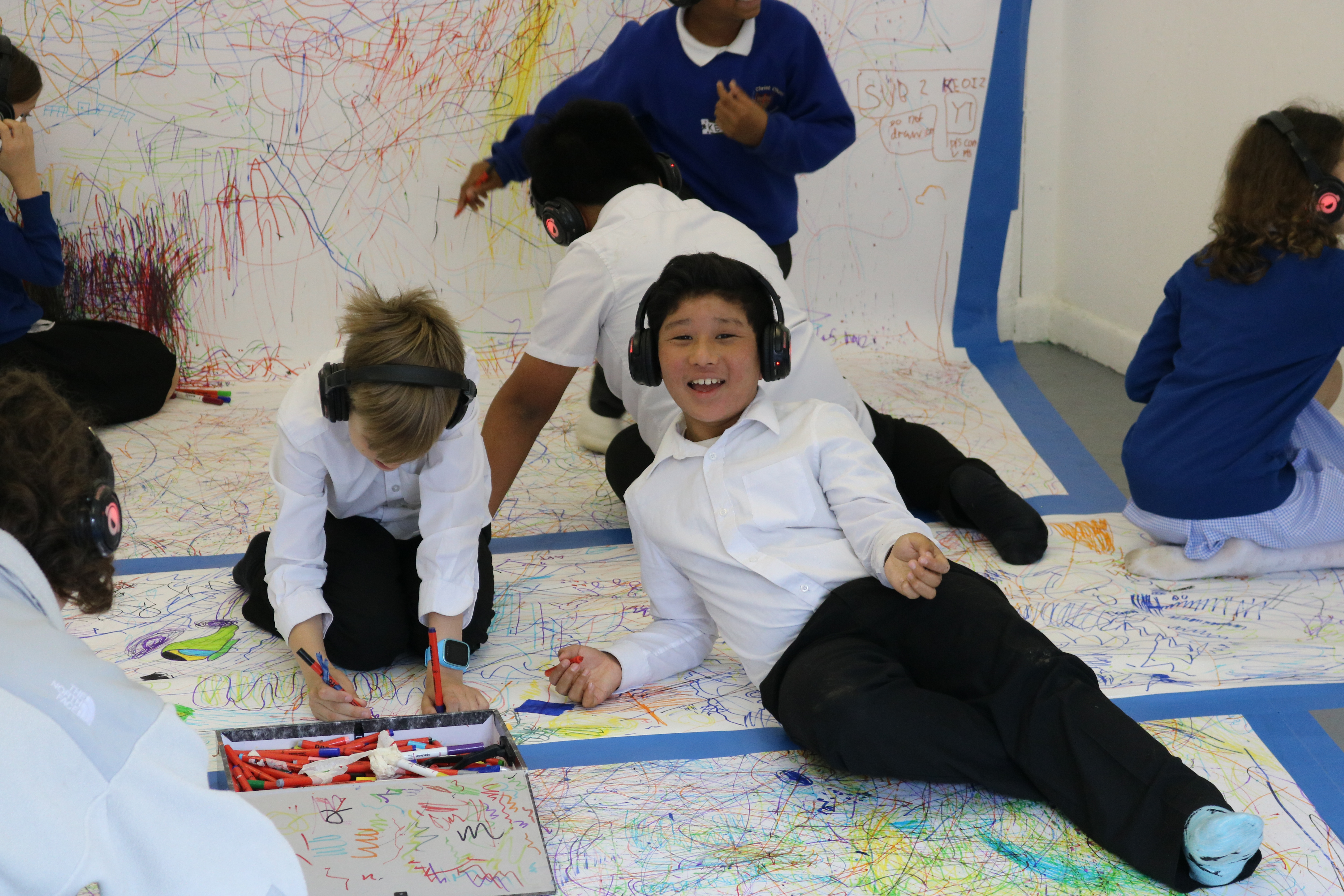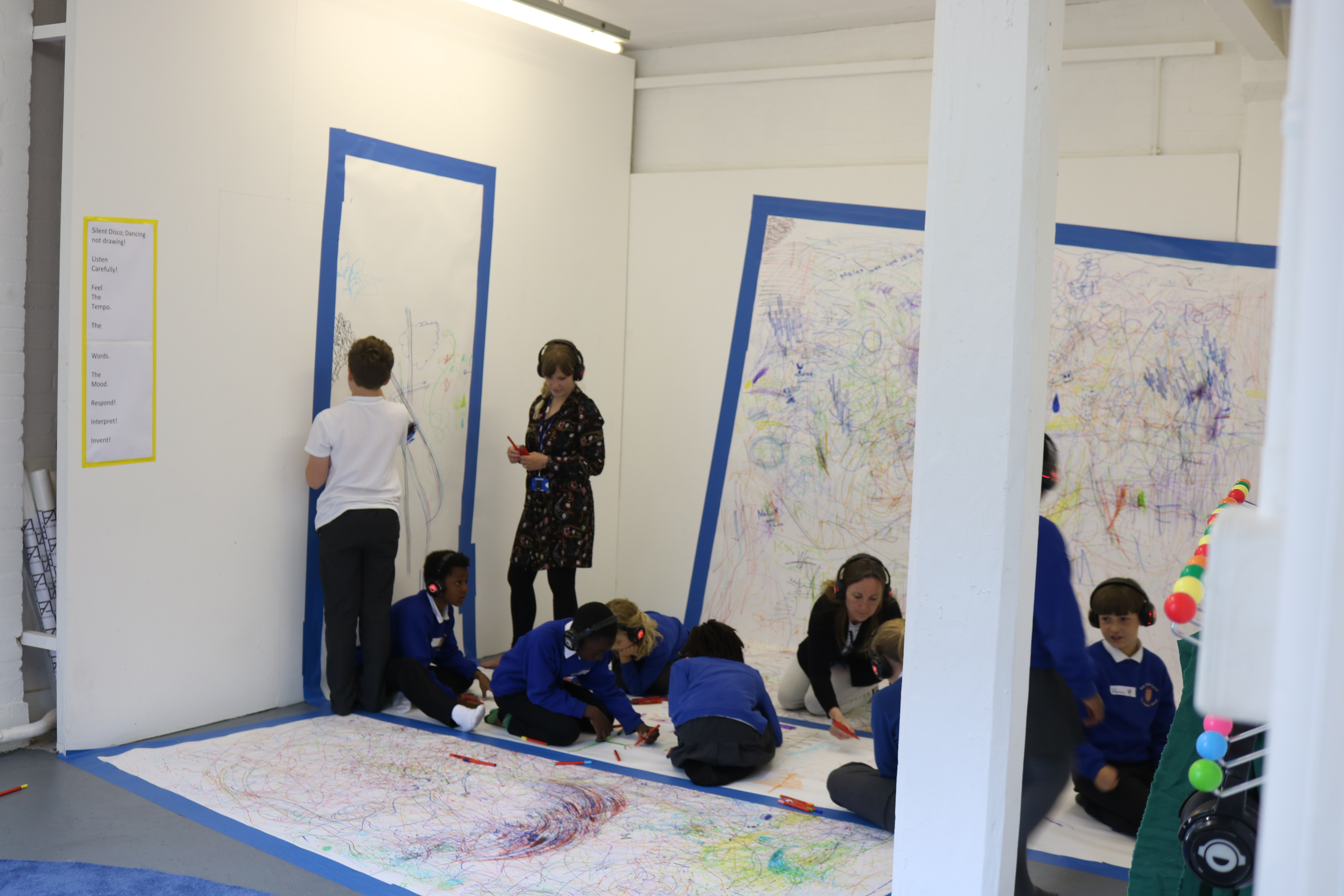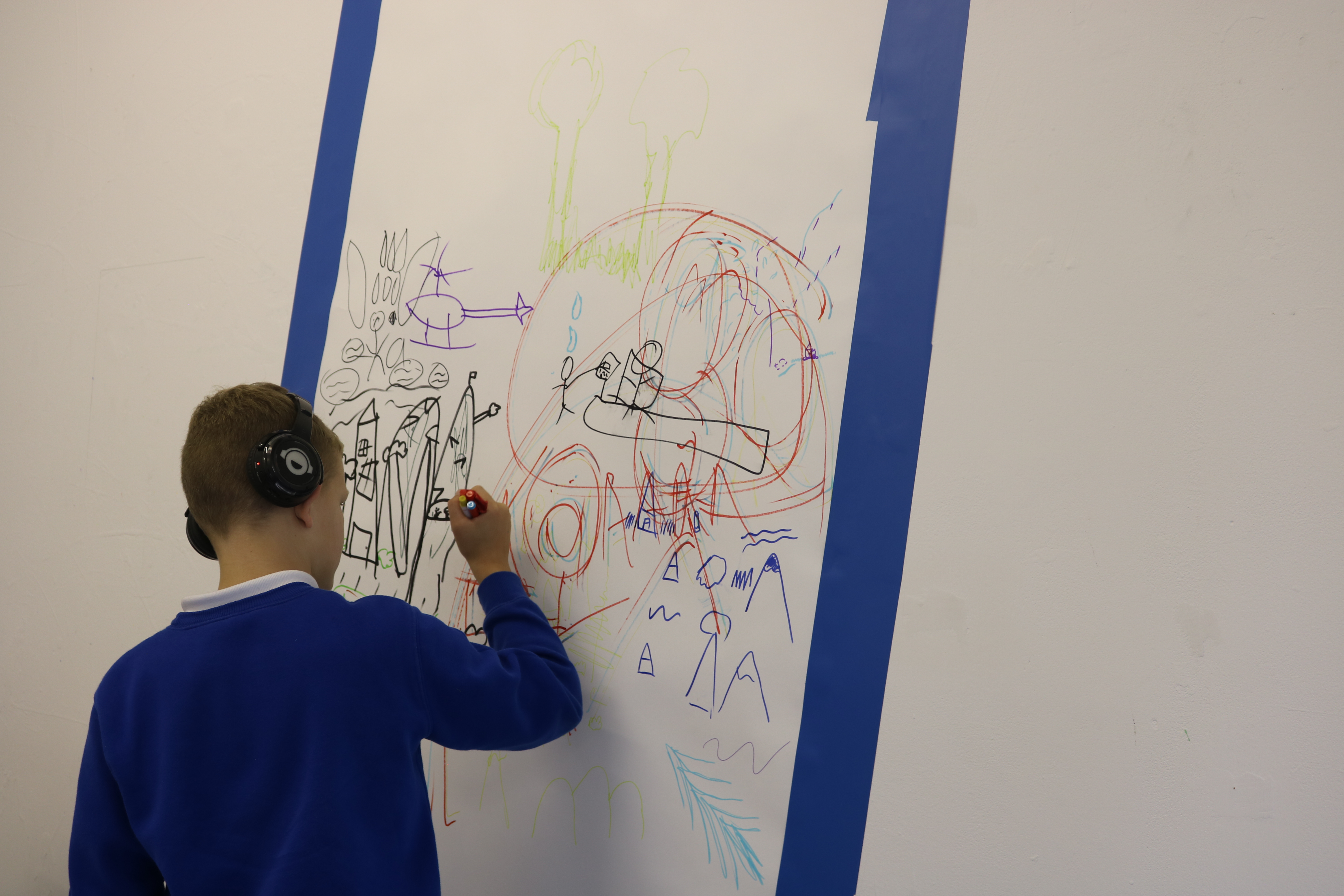 Our first activity was art with audio. This was an activity where the children were given a chance to explore various colours and draw what they heard exploring audio art. Working with Charlotte we introduced the activity and allowed the children’s minds to give way to thought and just express.