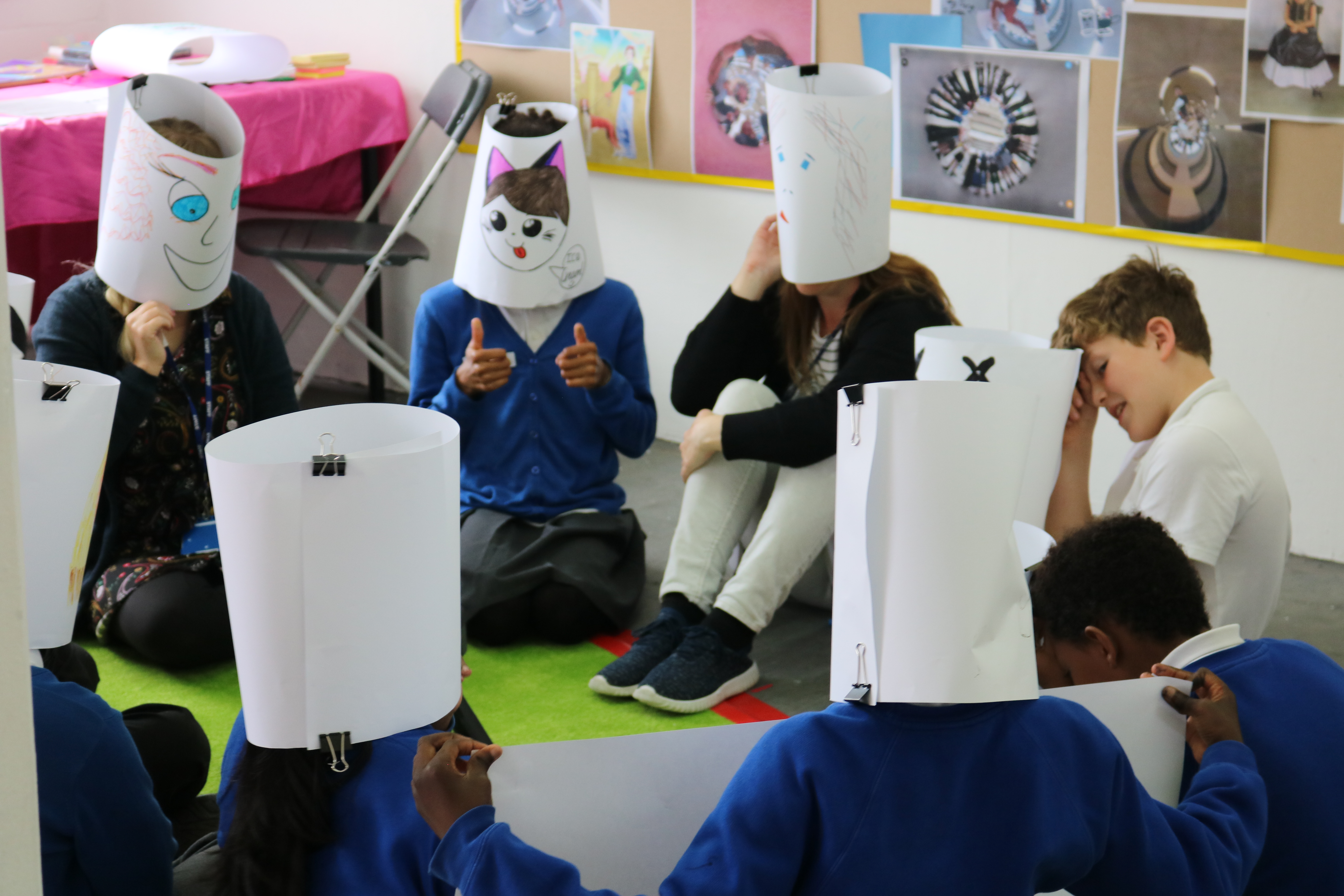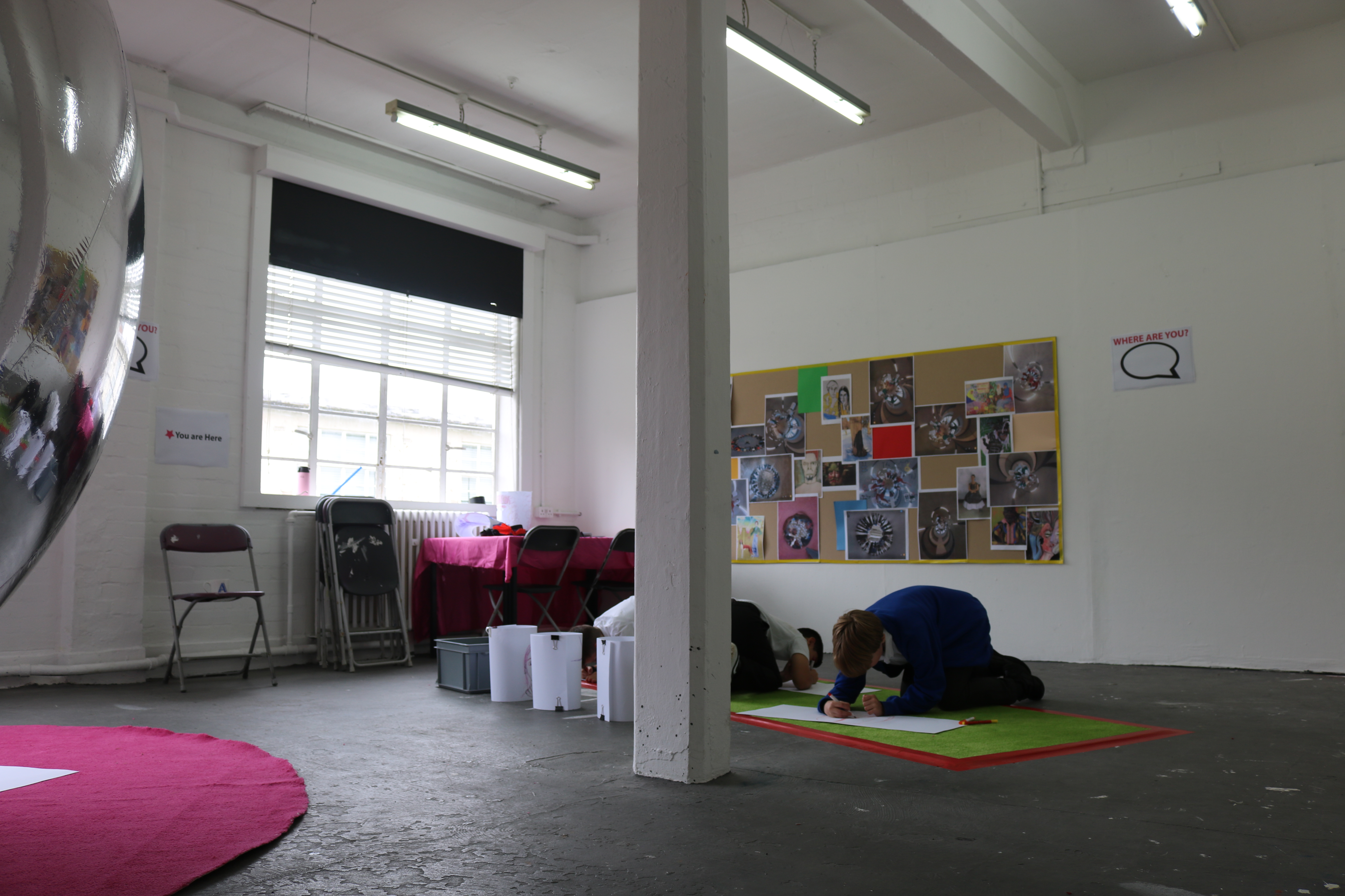 The day was shortly coming to an end and we moved onto our final and last activity. This activity was with the sphere in the centre of the room with the equipment of a go pro camera (360). The kids were given a chance to express themselves through drawing firstly. Some stayed to realism and others drew characters from either films or cartoons either way the outcome was brilliant. Pinning the paper together to make a rounded connected shape to fit around the heads of the children. Sitting down and standing up we were able to capture some amazing images that truly worked well and captured the aim of the activity. For my first day I loved it and enjoyed it so much the kids were such a joy and the teaching was also.