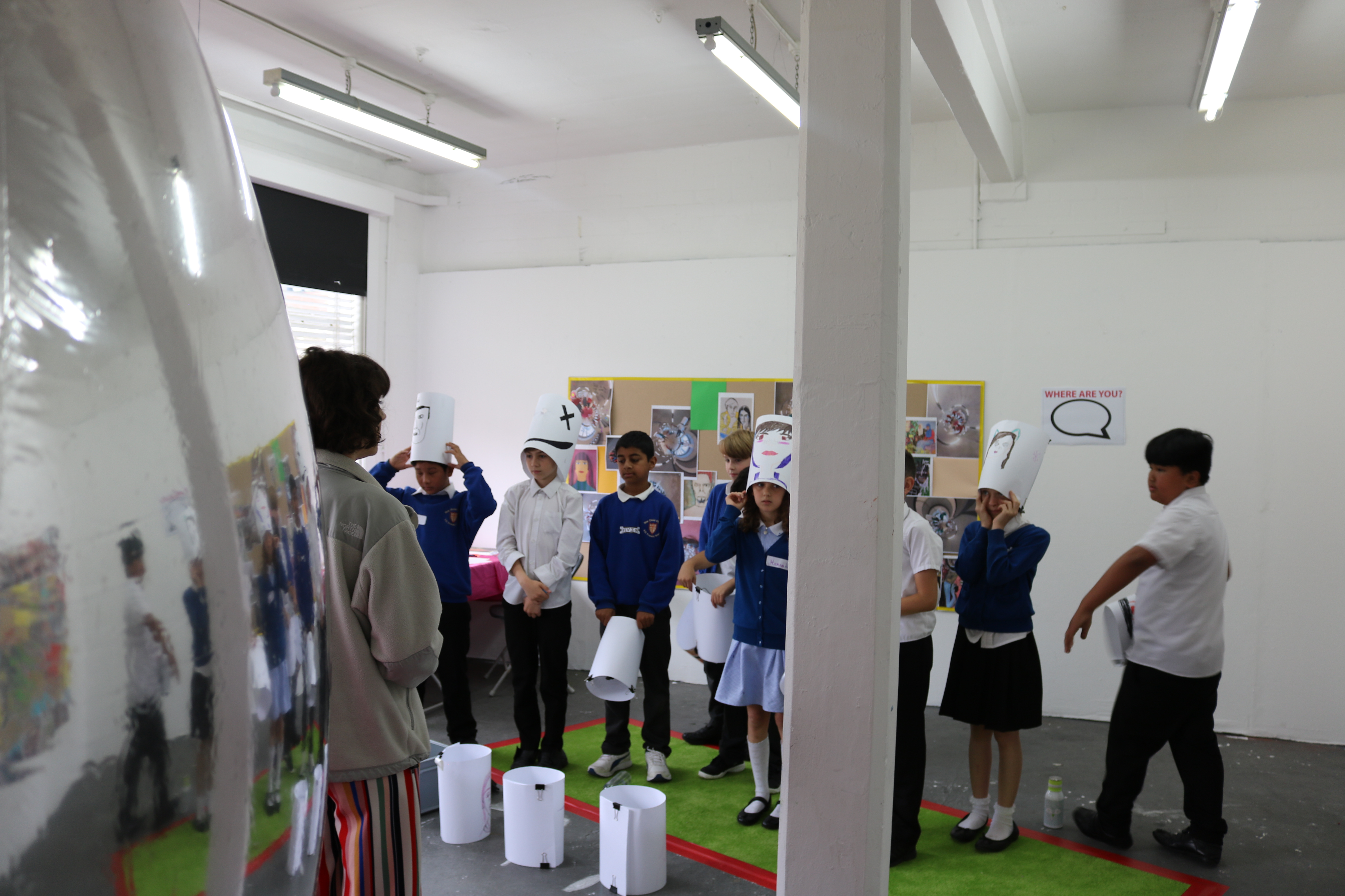 To begin, we gave them a tour of the studio and gave them a chance to answer and ask a bunch of questions or express interest to do with art. Wendy put them into three groups with three sets of colours, as mentioned previously I mentored and took care of the blue team.
