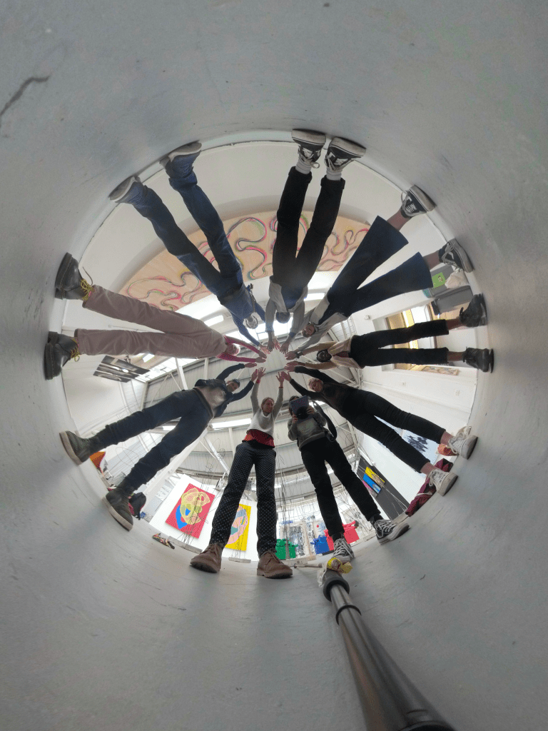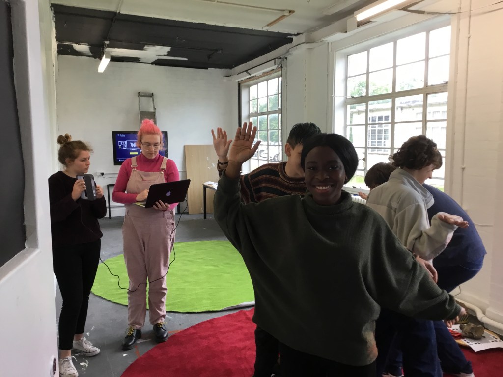 Following Tate Exchange 2019 we took the decision to develop three of the activities delivered there, continuing the format of small groups of 10 pupils paired with artlab co-researchers, and situate it in the department as a take-over or summer school. Each activities had its own room. Over the day we occupied different spaces; from the first warm up and brainstorming exercises, the first self-organised class portrait, through each of the activities to the final 360 group whole group selfie. We moved through the different spaces in the art department which was populated with art works from the degree show, to the landscape outside, in rooms of a different scale to some of their school ones.