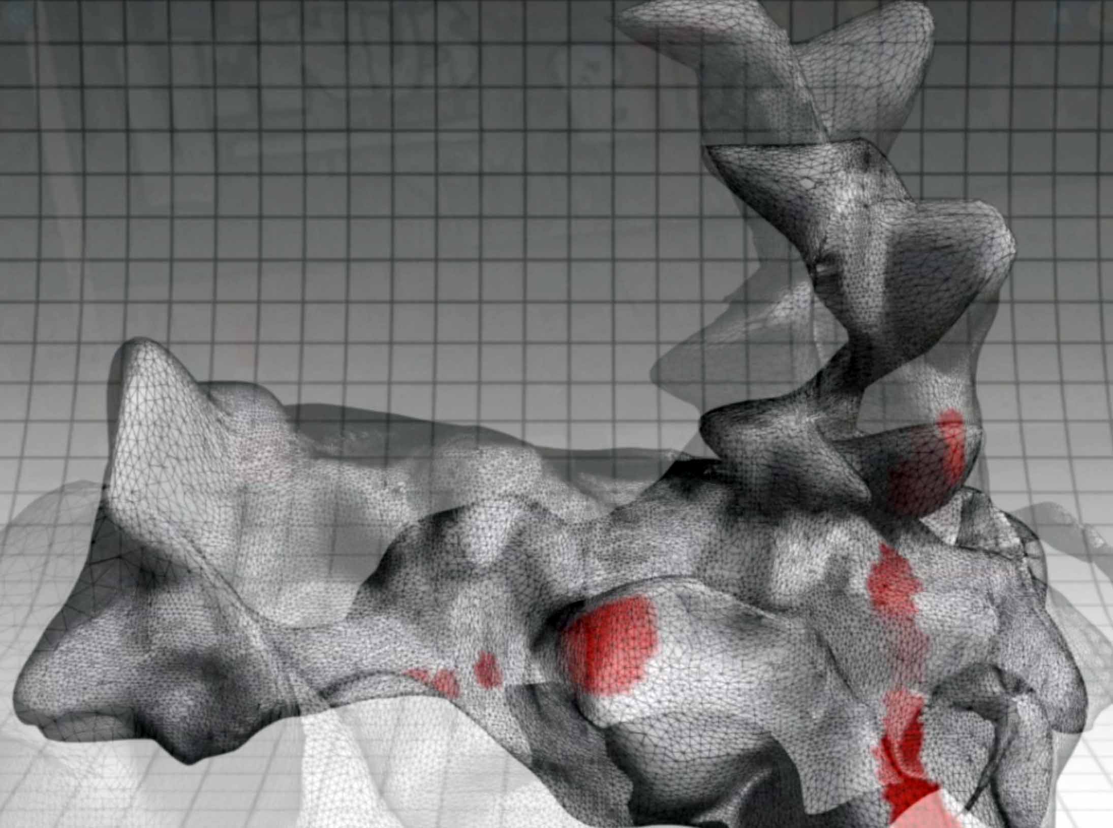 ‘…with the digital capabilities of our scanned sculpture, we experimented with the filming process as well as the setting which makes the object crawl and move. this started off a comparison to ‘aliens’ in the object’s relation to the body and how it became a part of it, or a separate autonomous being that relied on the body symbiotically. With this the act of self-harm became a more visceral thing in our work- particularly in the pulling and pushing of the digital clay- modifying it to our liking but accepting a lack of control for it too.’