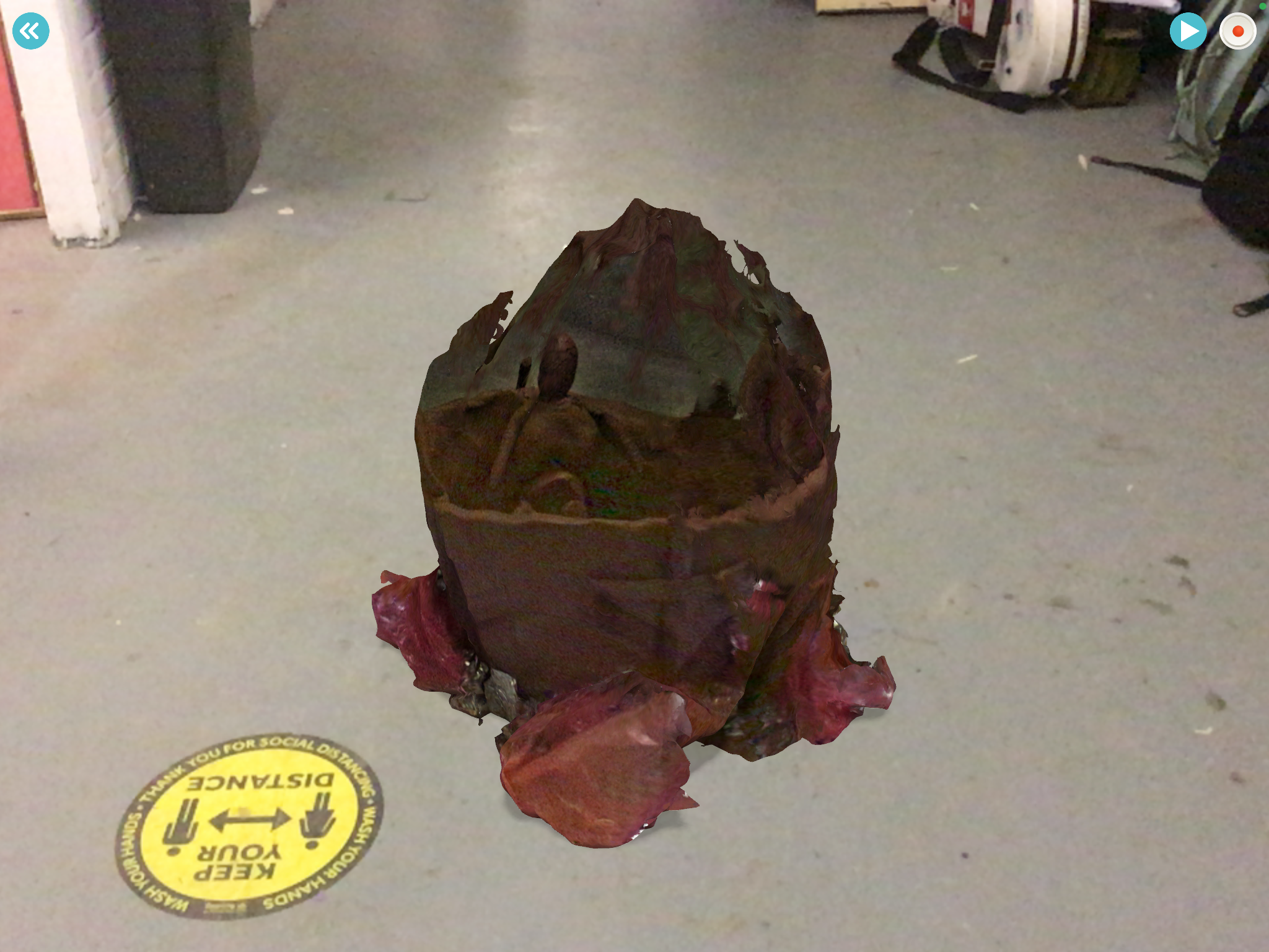 At this point the whole group was now digitally altering their scanned sculptures (we were at different stages of making in the previous week) and once finished, we used the Augmented Reality tool to bring them into real life and move in ways a creature would. Using this whilst recording, we were able to bring context and narrative to our sculptures, they had a presence. Whether small, hiding and unassuming, or large, foreboding and crushing. We were able to insert ourselves within this narrative too and configure a physical relationship to these objects. We placed them in setting such as in forests, under flowers, over cars, or scuttling through overgrown abandoned areas.