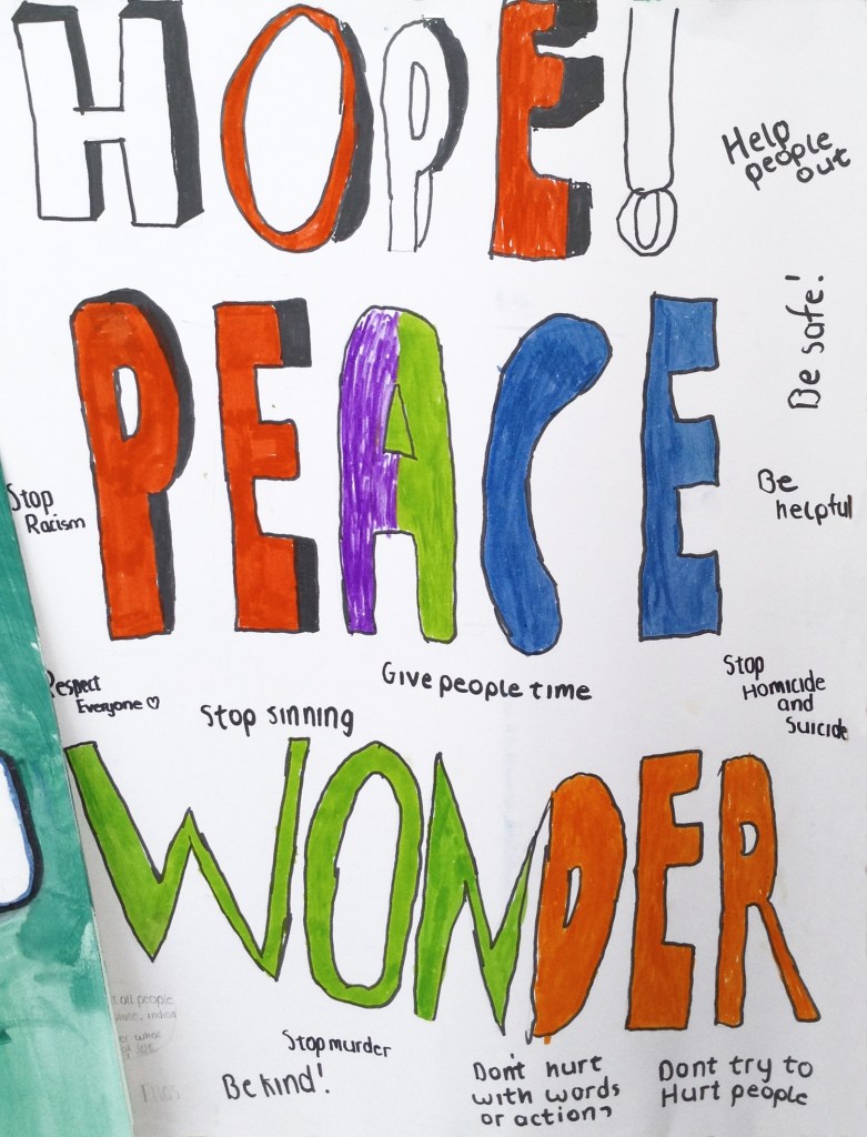 Our collaborative process encouraged the students to portray these themes as positive and uplifting sentiments. But the experience was truly a two-way street. As much as we guided and supported the children, they also brought their perspectives and ideas to the table.