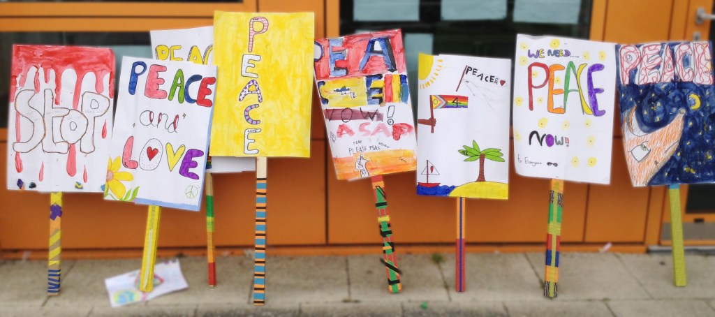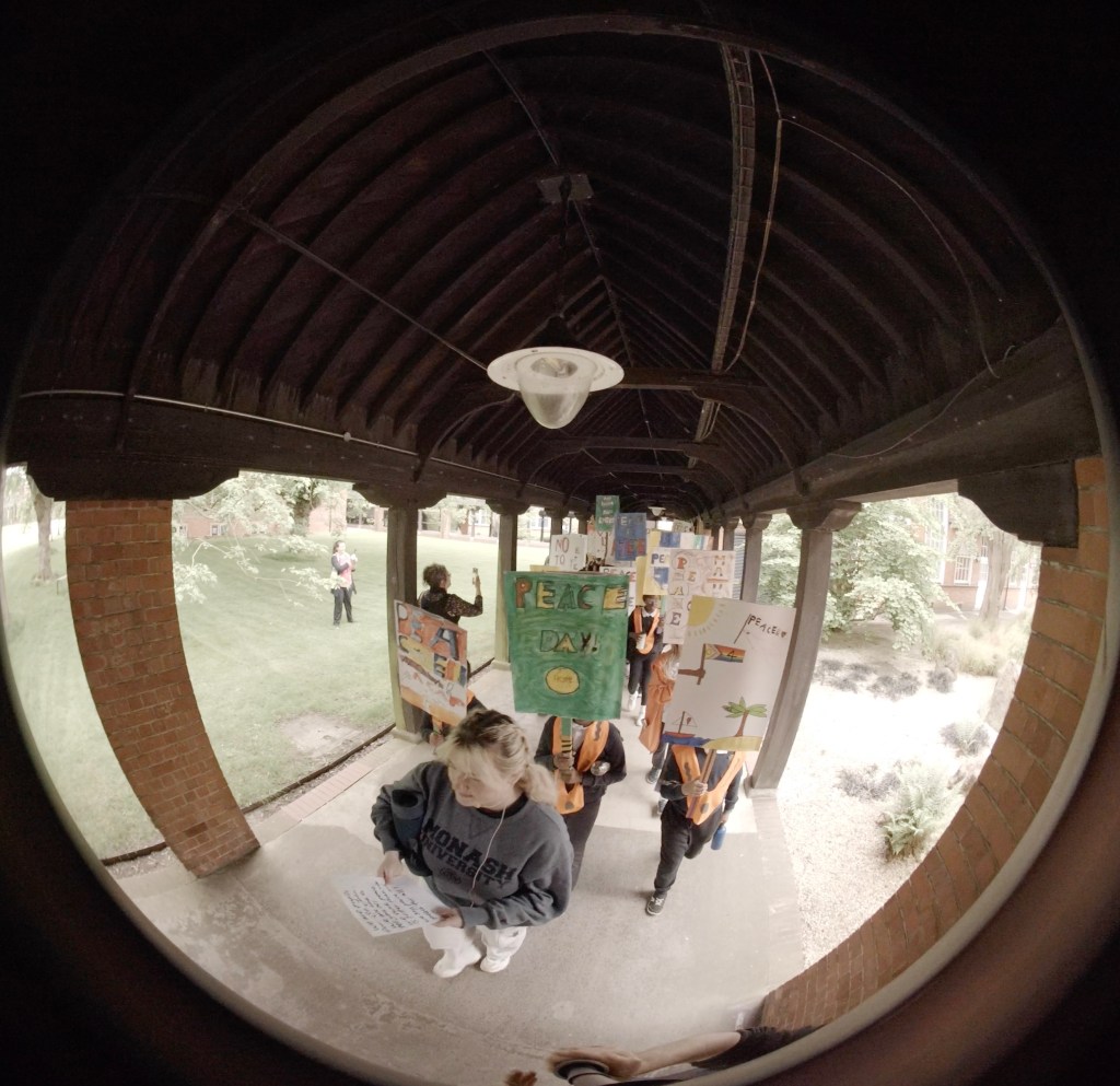 As we marched up and down the corridors, their collective voices filled the air, spreading their messages of unity, inclusion, and hope throughout the classrooms. Seeing their colourful placards and hearing their enthusiastic chants warmed my heart and reminded me of the profound impact that art and youth activism can have. Despite complex global challenges, these students demonstrated an unwavering commitment to creating positive change.