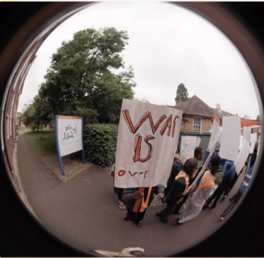 In the Summer Term (2024), myself and a team of Fine Art students from the Art Department had the privilege to join pupils from St John’s Primary School, Reading to engage with some artwork. This was done in collaboration with Reading University’s ArtLab, our mission was to hold a peace parade.